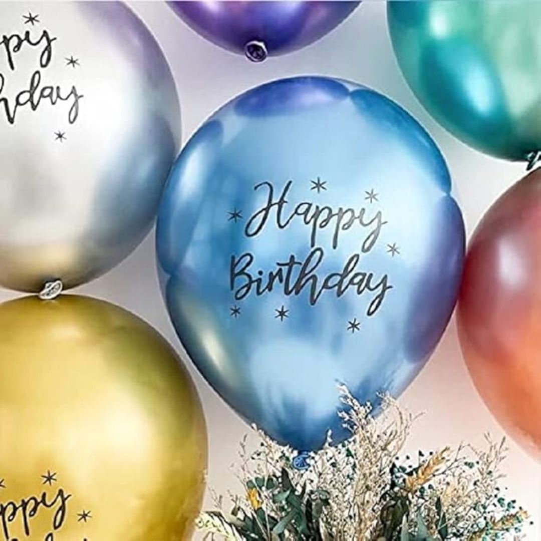 • 12 INCH PRINTED HAPPY BIRTHDAY BALLOONS SET: The pack contains Happy Birthday Printed Chrome balloons in assorted colour. Makes the perfect balloon bouquet. High Quality Balloons. Blow till 10 inches for best result.